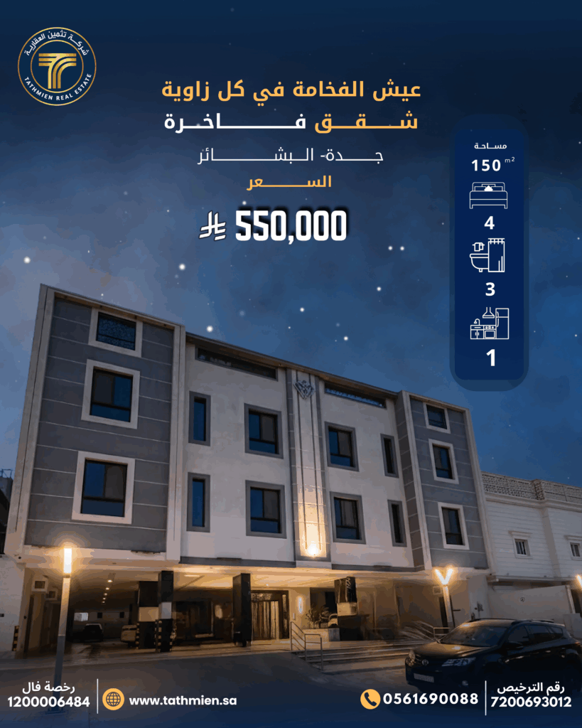 شقق تمليك بمساحات مختلفه وتشطيبات فاخر وباسعار منافسة بالسوق العقاري