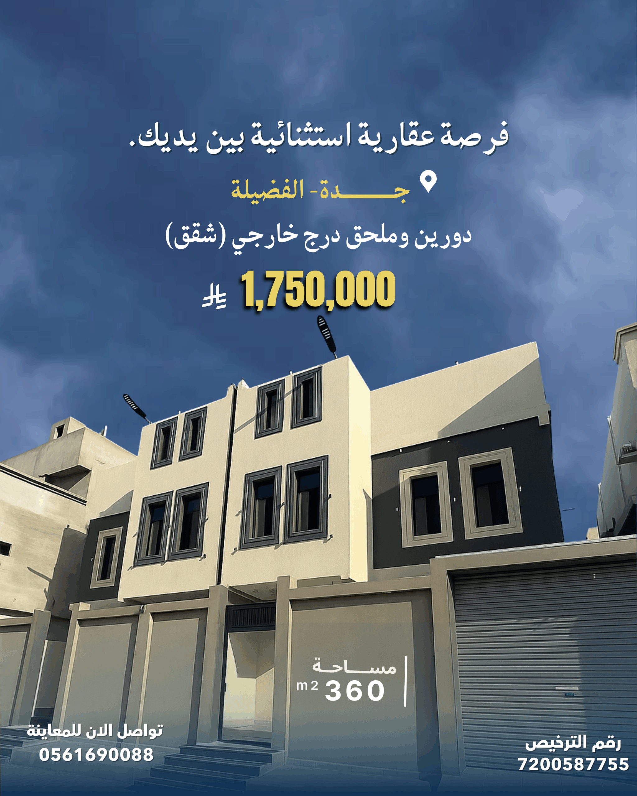 فرصة عقارية بحي الفضيله دورين وملحق(شقق)