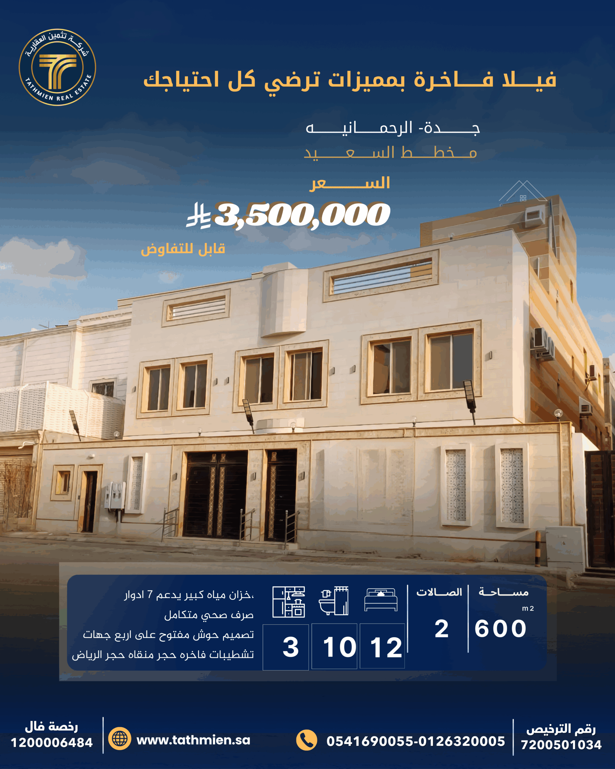 فيلا ترضي احتياجك -الرحمانية -مخطط السعيد
